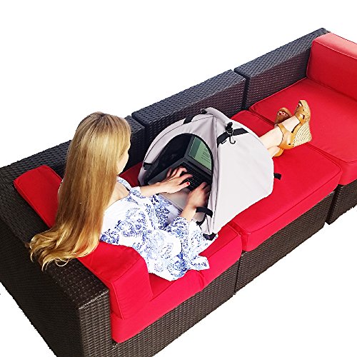 - PORTABLE PRIVATE OFFICE / WORK FROM ANYWHERE: The Laptop Tent Sun Shade is a lightweight “collapsible” laptop bag that pops open into a tent to reduce sun glare, prevent overheating, and protect your laptop & accessories from the sun, rain or snow. When used as a “briefcase”, your laptop is secured inside using a strap with extra room for a phone, documents, lunch, beverage, towel, etc. When not in use, Laptop Tent folds into a small round pouch for easy transport in a book bag or suitcase;