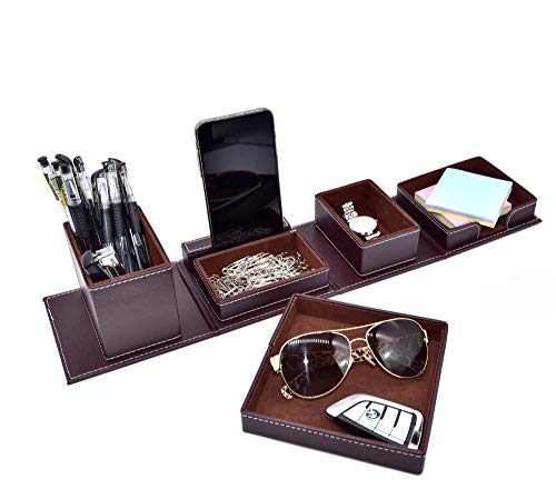 - ❤ 【Multi Function】Leather desktop organizer,5 divided compartments to organize your office supplies:pen,pencil, accessories, remote control , cell phone and cosmetics or other small sundries.Save time on the desk to find things. Clean and tidy work environment can improve work efficiency.