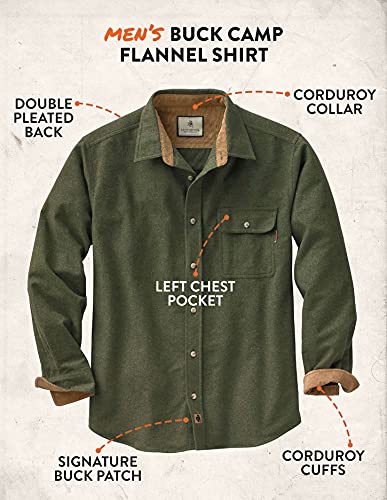 Details: A hunter’s wardrobe is not complete without a great flannel. Our exclusive plaids are made from 100% cotton soft brushed flannel. Featuring double pleat back for ease of movement and contrasting corduroy lined collar and cuffs for a great look and lasting durability. Left chest pocket with pencil slot and button closure, and adjustable cuffs. Big & Tall sizes are designed for men over 6'2" and add 2" in body length and 1-1⁄2" in sleeve length.