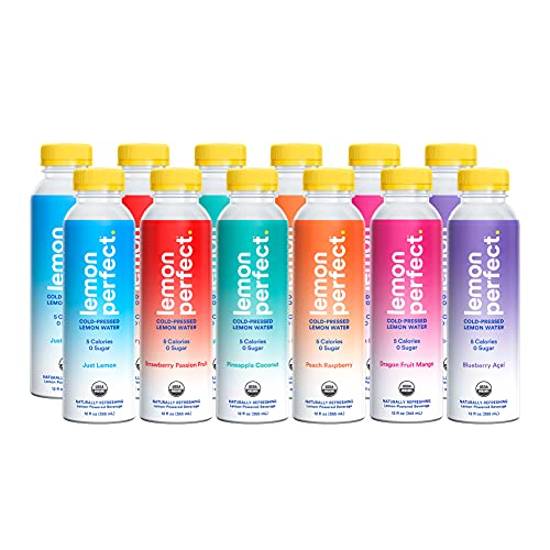 - 6-FLAVOR 12-PACK: Pack contains (12) 100% recycled plastic bottles of Lemon Perfect (12 fl oz bottle) in six naturally refreshing flavors: Just Lemon, Dragon Fruit Mango, Blueberry Açaí, Peach Raspberry, Pineapple Coconut, and Strawberry Passion Fruit (2 bottles per flavor)