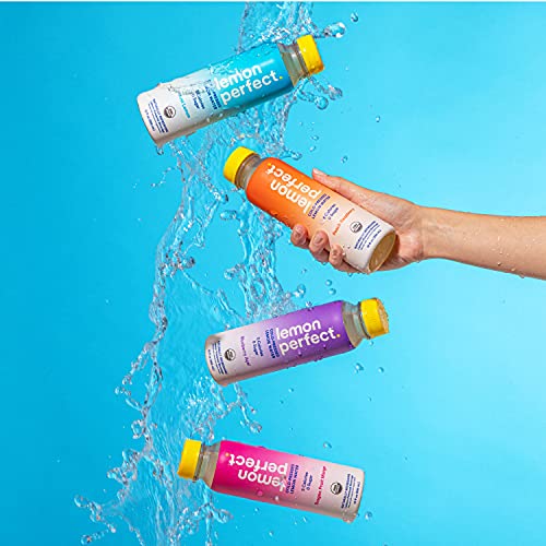- 4-FLAVOR 12-PACK: Pack contains (12) 100% recycled plastic bottles of Lemon Perfect (12 fl oz bottle) in four naturally refreshing flavors: Just Lemon, Dragon Fruit Mango, Blueberry Açaí and Peach Raspberry (3 bottles per flavor)