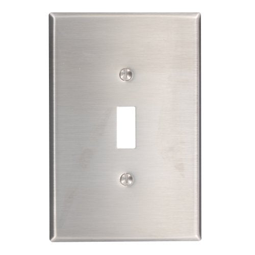 Details: From the Manufacturer Leviton Combination Wallplates come in a variety of configurations and gangs, and are available in a broad selection of materials including, aluminum, brass, stainless steel and plastic, and in an assortment of colors. If you have a unique application, Leviton can also customize a wallplate for a specific job.1-Gang Toggle Device Switch Wallplate, Oversized, Device Mount, Stainless Steel. Note : Peel off the blue protective layer on the item before use.
