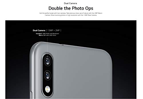 Details: 6.2” HD+ Display - Bigger and Better ViewingHuge screen to take it all in. Make video calls with everyone in full view. Stream movies and series. Play games. All on a 6.2" 19:9 HD+ V-notch Display that stretches from edge to edge. Dual Camera - Double the Photo OpsGet the perfect angle with two cameras. Take precious close-ups of nature with the 2MP Macro Camera. Shoot stunning photos in high resolution with the 13MP Rear Camera. 1.3GHz Quad-core - Excellent to the CoreDo more at once. Seamlessly switch between apps and tasks without interruptions. The Qualcomm® 215 Mobile Platform with 1.3GHz Quad-core processor enhances performance so everything runs quickly and efficiently. 3,000mAh Battery - Keep Calm and Binge OnThe battery that keeps up with you*. Chill out and enjoy your favorite YouTubers, the latest movies, and the hottest games. MIL-Spec - Safely Always Beside YouNever lets you down. The phone is so tough that extreme temperatures, drops, vibrations, and humidity can't hold it back. With MIL-STD-810G, even when accidents happen, there's no need to worry.