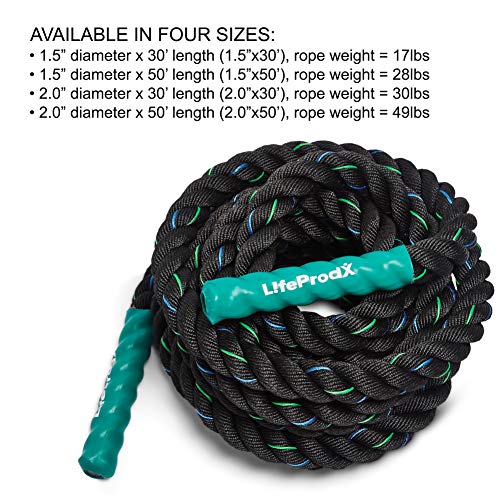 Details: Are you looking for a way to ditch the gym but still want to use equipment?! LifeProdX Battle Rope 3-Strand Poly Dracon is the product for you! Bringing versatile and high-intensity workouts to your home on your schedule! ✓ Awesome quality product to provide different levels of workouts for beginners and professionals. Workout all muscles including legs, arms, glutes, and your core! ✓ What size is the best battle rope for you? There are two considerations, your ability and workout objectives and the size of your space. Shorter smaller diameter ropes are lighter and although easier will still provide an excellent workout and work better in smaller spaces. Longer heavier ropes are for more intense strength workouts and require more space. your ✓Are you interested in anchoring your battle rope? An Adjustable anchor strap is provided to connect to any strong point around your home or in a nearby park! The anchor strap connects easily to a tree, car hitch or a fence post. Easy, no-hassle set up so you spend more time exercising! ✓ Are you worried about gym costs and cleanliness? Trust us to help you ditch the gym and no longer worry about cleanliness, judgment and commutes! You are getting everything with our battle rope! We are a U.S.A. based company run by Americans. We stand by our products 100%. If you are unsatisfied for any reason we will send you a replacement. No. Questions. Asked.