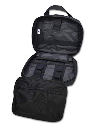 Details: The officer's patrol kit by Lightning X is an excellent pack for treating gunshot and stab wounds, as well as other life-threatening traumatic injuries. We give you all the supplies that you need, without all of the unnecessary "fill" that you don't. Here's the breakdown...THE BAG: The LXPB50 is designed to universally attach to any vehicle headrest, or alternately any MOLLE compatible gear or bag with at least 5 rows of loops. The main bag attaches to the rear base via a hook & loop panel so that it can be easily removed in the event of an emergency with only the pull of your hand. Additionally, the bag can be opened while still attached to the base on a headrest and three tiered panels are revealed. The top two panels have various sizes of elastic tool loops in addition to pockets for storing supplies. The bottom panel is a zippered mesh compartment that is also easily removable via the hook & loop attachment to the bag. Finally, the front of the bag is covered with a laser-cut hook & loop MOLLE panel for storing additional tools, mounting morale patches, or attaching additional MOLLE gear. This panel comes with a rubber CROSS emblem included with the bag. Dimensions: 10.25"L x 4"W x 7.5"H - Includes a limited lifetime warranty from Lightning X Products.***THE KIT: NAR Hyfin Vent Chest Seal Twin Pack Compact (2 chest seals), North American Rescue brand C-A-T Tourniquet Gen 7, Black Nitrile Tactical Gloves (4 pairs in carded pocket pack), Israeli Military Pressure Bandage 4", Compressed Z-Folded Krinkle Gauze, 4" x 4" Burn Dressing, 5" x 9" ABD Pad (2 pads), Nasal Airway 28FR, QC Comb Gauze Z-Folded LE 3" x 4yd, 7.5" Emergency Trauma Shears, Emergency Survival Foil Blanket, 2" Tactical Black Self-Adherent Gauze, Instant Cold Compress Pack, QuickStop Blood Stop Spray, 1oz Eye Wash/Irrigation Solution, CPR Face Shield w/ One-Way Valve, Alcohol Prep Pads (10), Iodine Prep Pads (10), Sting & Bite Relief Pads (10)