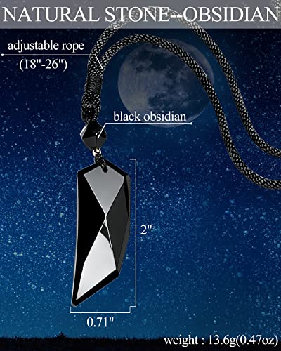 - ❤Natural obsidian wolf tooth necklace, material: black obsidian, size: 18*50*8mm(L*H*T),(0.71’’*2’’*0.31’’) top bead is 10mm(0.39’’) diameter obsidian cut, metal bead is plated 14k gold, necklace rope is freely adjustable between 46-66cm(18’’-26’’);