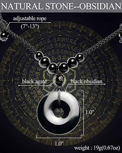 - ❤Natural black obsidian + black agate with six-character mantra , necklace rope is made of rope and beads woven together, pendant diameter: 30mm(1’’), thickness: 7mm(0.28’’), top bead diameter: 10mm(0.39’’), total weight: 19g(0.67oz);