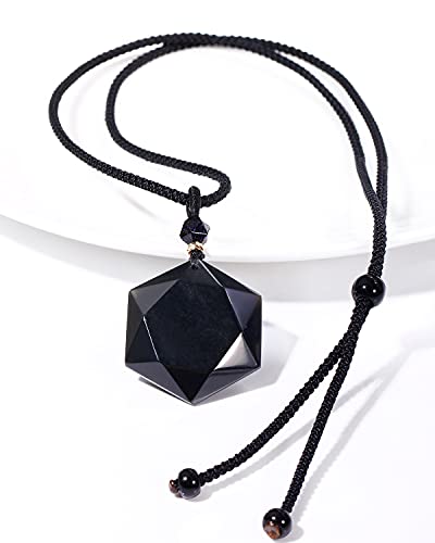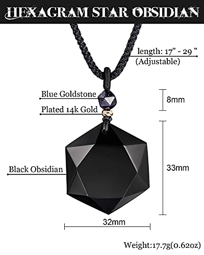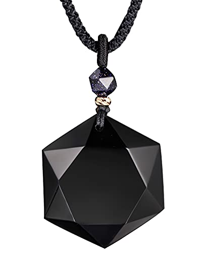 - ❤Material:Natural Black Obsidian,exquisite craft,pendant size:1.18"x1.34"x 0.38"(L x W x T),top bead is cutted blue goldstone,dia:8mm(0.27"),total weight:17.7g(0.62oz),rope length:18-26.5" (Adjustable);