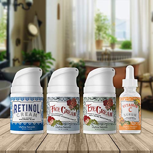 - 4 PIECE SKINCARE GIFT SET: This skin care set includes 4 LilyAna Naturals skin care products that come in a giftable box perfect to nourish skin during the harsh winter months. Included in this skin care kit are our top 4 facial skin care routine products: Retinol Cream, Vitamin C Serum, Eye Cream and Face Cream.