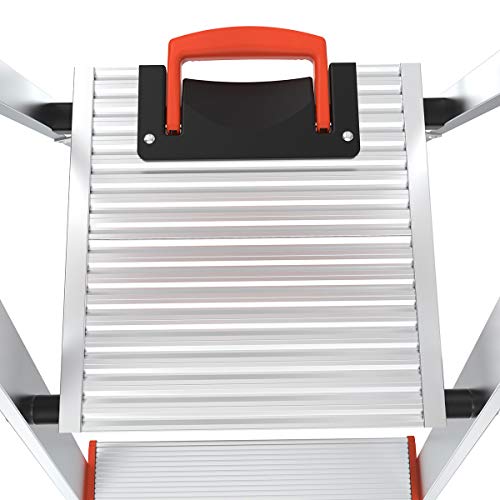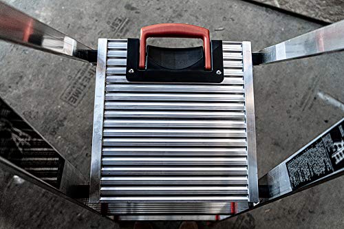 - Lightweight aluminum stepladder is easy to transport, set up and take down.