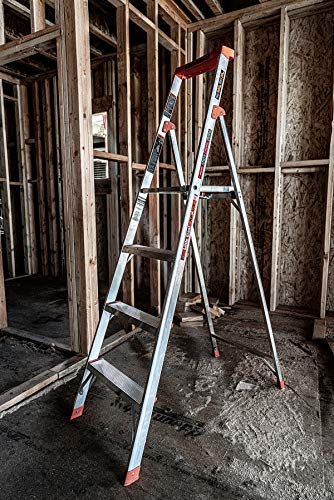 Details: Product Description Climb In Comfort Unlike most platform stepladders, which are often engineered to be inexpensive, the Little Giant Flip-N-Lite is engineered to be safe without being expensive. The lightweight Flip-N-Lite opens easily with just one hand and offers comfortable, deep rungs with a huge, secure standing platform. With a lightweight, slim profile and extra heavy duty construction (ANSI Type IA 300 lb. rating), the Flip-N-Lite is the perfect climb-in-comfort solution for anyone from a seasoned construction pro to a busy do-it-yourselfer. Full Foot Support At 14. 25 in. x 12 in., the Flip-N-Lite's standing platform offers heel-to-toe foot support, eliminating foot pain and fatigue and allowing the user a completely stable, comfortable place to stand while working. Super Lightweight No matter which model you pick, the Flip-N-Light is slim and light enough for almost anyone to maneuver: 6-Foot Model = 14 lbs. 5-Foot model = 12 lbs. 4-Foot model = 9. 5 lbs. Extra Heavy Duty Construction While the Flip-N-Lite is engineered to be lightweight and easy to handle, it's heavy duty construction is rated to hold up to 300 lbs. on each step and meets or exceeds all applicable Occupational Safety and Health Administration (OSHA) and American National Standards Institute (ANSI) standards for product quality and safety. Security and Convenience Feel confident on your Flip-N-Lite with the tall handrail that adds even more stability and support. It also features a handy tool tray. From the Manufacturer Unlike most platform stepladders, which are often engineered to be inexpensive, the Flip-N-Lite 15270-001 6-footer from Little Giant Ladder Systems is engineered to be safe without being expensive. The lightweight Flip-N-Lite opens easily with just one hand and offers comfortable, deep rungs with a huge, secure standing platform. With a lightweight, slim profile and extra heavy duty construction (ANSI Type IA 300 lb rating), the Flip-N-Lite is the perfect climb-in-comfort solution for anyone from a seasoned construction pro to a busy do-it-yourselfer.