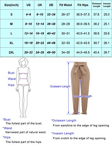 - 【FEATURE】They have the perfect amount of stretch. COMPLEMENT A LOT OF DIFFERENT BODY TYPES,even early pregancy.The waistband is stretchy and has a belt which can be tied to fit your body type. Super flattering and slimming. The pockets are large. The belt is super cute and long enough to tie a cute bow but not so long that you end up with extra fabric swinging around. The ankles can be worn loosely or be tied tightly in a bow as you like.