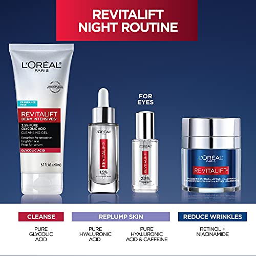 Details: New Revitalift Pressed cream with powerful derm-recommended duo Retinol plus Niacinamide in our 1st fresh-pressed jar. It visibly reduces wrinkles, evens tone and deeply moisturizes. Retinol, Niacinamide and nourishing oils are freshly pressed into a deeply hydrating yet lightweight night cream. Dermatologist tested for safety. HOW IT WORKS: Pressed night cream with Retinol and soothing ingredients: - Retinol, Vitamin A, a top dermatologist recommended anti-aging ingredient known to fight key signs of aging such as wrinkles and uneven skin texture - Niacinamide, Vitamin B3, an essential nutrient that strengthens skin's barrier, supports its natural repair process and helps brighten skin overall, for a healthier looking complexion. - Panthenol, Vitamin B5, a key nutrient that enhances skin's own moisture retention for up to 24 hour hydration. WHAT'S NEW: Our 1st fresh-pressed jar is hygienic and easy to dose for each application. THE RESULT Overnight: Skin is deeply moisturized, feels softer and smoother. Over Time: Wrinkles are visibly reduced. Contours on the face and neck are firmer, tighter. Complexion looks brighter, more even and radiant. Skin is hydrated for up to 24 hours. Overall, skin look healthier and younger. New L'Oreal Paris pressed night cream is Fragrance free, Allergy tested, Paraben free, Dye free and Mineral Oil Free. It is non-greasy, absorbs quickly and does not clog pores. Suitable for all skin types. Dermatologist tested for safety. See results or your money back, guaranteed. Money back guarantee, up to 36.99 dollars (sales tax will not be refunded). Restrictions apply. For details, call 1-800-630-5585. Valid in the 50 U.S/D.C. Void where prohibited. Limit 1 refund per person and per household.