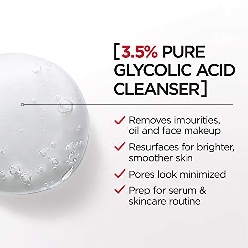 Details: Resurface your skin and prep it for your serum application in 1 simple step! NEW Revitalift Derm Intensives 3.5% Pure Glycolic Acid, a daily exfoliating cleanser that resurfaces, removes excess oils and makeup to reveal smoother, brighter skin and to prep skin for serum application. HOW IT WORKS: the cleansing gel resurfaces skin by gently dissolving what holds dead cells together and reveals smoother and brighter skin ready for Derm Intensives serum application. WHAT'S NEW: Dermatologist-validated* formula with glycolic acid, salicylic acid and Aloe extract is non-drying and is designed for daily use. THE RESULT: Impurities, oil and face make-up are removed, pores look minimized. Skin feels hydrated and refreshed. Skin is resurfaced, it appears smoother, brighter and feels prepped for serum application. Glycolic acid is an alpha hydroxy acid recognized by dermatologists as an effective exfoliator to reveal fresher, brighter skin. Salicylic acid is a beta-hydroxy acid (BHA) that helps refine the appearance of enlarged pores. Revitalift Derm Intensives 3.5% Pure Glycolic acid cleanser is Allergy Tested, Paraben Free, Fragrance Free, Dye Free, Mineral Oil Free. Dermatologist tested suitable for sensitive skin.*An external panel of dermatologists validated that Revitalift Derm Intensives products uphold strict formulation standards and reviewed independent clinical testing results and protocols.