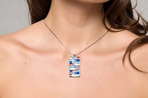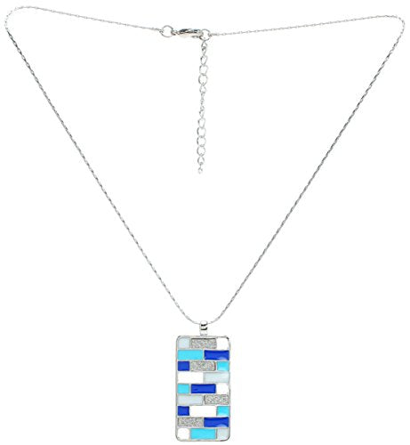 - Lova Jewelry Aqua Turquoise Electric Blue Mosaic Glitter Silver Tone Metal Necklace Earrings Set