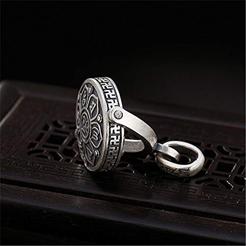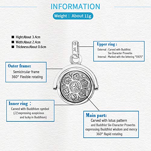 - 【RELIGION DESIGN】: 4 Key Components.1-Upper ring Which Can Hang up With Chain,Carved with Traditional Buddhism hieroglyphic and “S925”;2-Outer Semicircular Frame is Flexible Rotating;3-Inner Ring Carved With Buddhism Symbol (Expressing Auspicious And Lucky in Buddhism).4-Main Part Is Carved With Lotus and Buddhist Six-Character Proverbs Pattern on Both Sides,Expressing Buddhist Wisdom and Mercy ,Rugged Front and Plain Reverse Side Can 360 Rotating Rapidly.