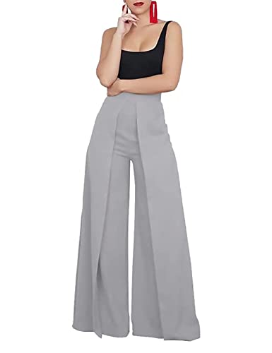 - 【Features】: Elastic waist, back zipper up, solid color, high waist, split legs, wide leg pants, loose fit, palazzo trousers. It is cute, leisure and elegant, you can get many uses from it