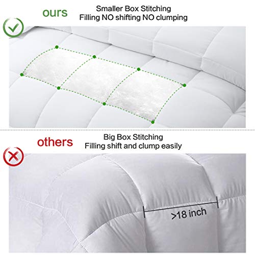 - 🌙LIGHTWEIGHT & DESIGN for EVEN FILLING: Premium and well distributed filling makes the comforter lightweight and fluffy.The Lightweight comforter king is light enough for summer night when the tempreture falls and heavy enough for winter without feeling trapped beneath a heavy comforter.