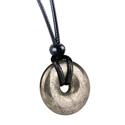 - PYRITE IRON - Each lucky donut totem is naturally unique and no two pieces are ever alike. The Pyrite Iron gemstone is believed to promote good luck and protect from the evil eye energies.