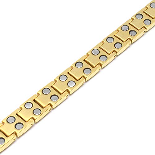 - ☑️ PREMIUM QUALITY – Meticulously crafted with medical-grade titanium which is hypoallergenic, light-weight, and waterproof. This titanium bracelet is durable and has an elegant gold plated (PVD) finish. You won’t have to worry about tarnishing or allergic skin reactions with this premium MagnetRX bracelet!