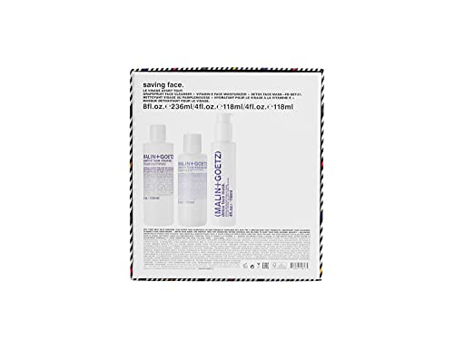 Details: Product Description our top 3 best-selling face products. grapefruit face cleanser, vitamin e face moisturizer + detox face mask. the perfect trio for combating winter dryness and helping to keep your skin looking healthy + balanced. cleanse + hydrate with our essentials: grapefruit face cleanser + vitamin e face moisturizer. when your skin needs more, add on our detox face mask to deeply cleanse skin of dirt and oil while locking in hydration with amino acids and soothing almond extract. Brand Story Founded in 2004, Malin+Goetz is a fusion of Matthew Malin’s and Andrew Goetz’s corresponding passions for beauty and design. The products are made to be both gentle and effective, for all skin types, and for both women and men.