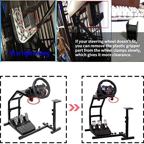Details: Racing Wheel Stand for Logitech Steering Wheel Stand Introduction: Marada is a company specializing in game products, including simulated racing cars, game chairs and E-sports and game accessories.Our aim is to provide our customers with a home setup that ensures they experience simulation gaming to the highest standard at a very affordable price. Compatity : Logitech Wheels: G25, G27, G29 Thrustmaster :T300RS, TX F458 & T500RS All Fanatec Wheel,Other wheels can be clamped on Easy shift:Racing Wheel Stand supports left and right gear switching Easy Adjustable :Height adjustable to suit the user's height Easy Installation: Anyone can easily install, easy to assemble and disassemble. Easy Storage: The racing wheel stand is foldable, helps save much space for easy storage. Easy Play :Provide perfectly stable condition while playing, 4x non slip rubber pad protection (removable). Product video installation link: https://www.youtube.com/watch?v=lyC-9EXCbZE Specifications: Condition: New Boxed Weight: 42lb Packing Dimensions: 21“ x 18" x 12" Package Weight: 22lb Net Weight: 20lb Note: Does not include wheels and pedals.If you have any Questions, Please feel free to Contact us.You Deserve the Best After-sales Service.We will do all things we can do to give you an excellent shopping experience.we will try our best to help customers and strive for customer satisfaction.