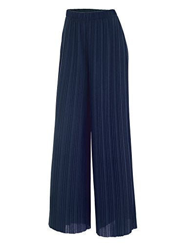Details: Womens Pleated Wide Leg Pants with Elastic Waist Band - Made in USA