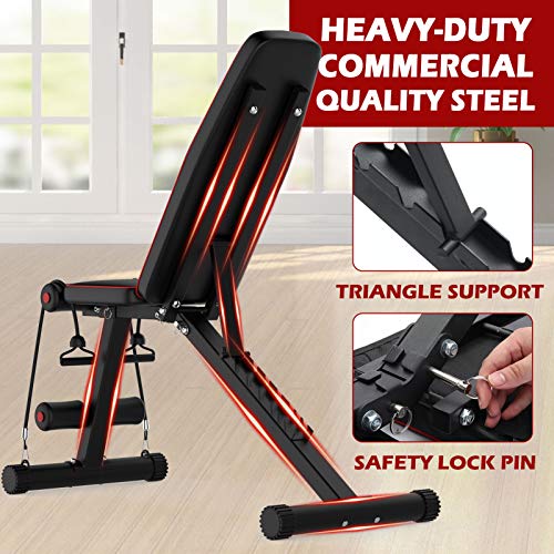 - ➤【Adjustable Weight Bench with 7 Positions】Our Adjustable Bench made of heavy-duty commercial quality steel.The foldable bench has 7 backrest pad positions to satisfy all your needs when workout.