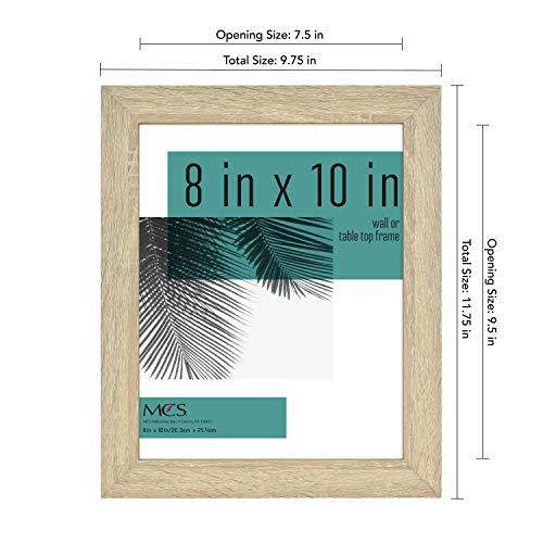 Details: The MCS Studio Gallery 2-Pack of 8x10 Inch Picture Frames are the superior choice when framing photographs and artwork. Crafted with a 1. 125-inch classic MDF wood frame, the Studio Gallery stylishly showcases your favorite photographs. The modern natural woodgrain finish coordinates with most décor styles, making these frames the perfect addition to your living room, bedroom or entry way. The frames have easy to use turn buttons and slide in back. This versatile set of frames include an attached easel for tabletop display and sawtooth hangers for vertical or horizontal wall hanging.