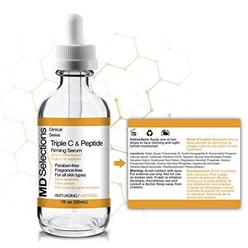 - POWERFUL TRIPLE VITAMIN C FORMULA - Our MD Selections Triple C & Peptide Serum is composed of a nutrient-packed formula that is clinically engineered to maximize its effectiveness in brightening skin and reducing the appearance of fine lines and wrinkles. No parabens, dyes or fragrances.