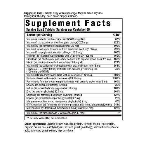 Details: MegaFood Multi for Men is formulated by award-winning integrative medical physician, Tieraona Low Dog, M.D., specifically for men looking to support optimal health and well-being. Crafted with a host of supportive vitamins and minerals, including B vitamins to support healthy energy function and nervous system health, choline to support healthy memory and cognitive function, iodine, and methylated folate and B12, plus the active form of B6, P5P. Methylated folate and B12 are suitable for those who specifically desire methylated forms. This is free from iron, calcium, and magnesium because it's not recommended for men to supplement their diet with iron or calcium unless otherwise recommended and under the supervision of a qualified healthcare practitioner. Take two tablets daily with a beverage, even on an empty stomach. MegaFood exists to help grow a healthier world, and we believe better health starts with what nature provides. Plants are our power, fueling each of us with the nutrients we need to be at our best. We expertly pair vitamins and minerals with real food, and partner with farmers who share our commitment to nutrient-dense food and soil health through regenerative agriculture. We believe you are what you do, so we’re obsessed with quality. We offer product certifications like Non-GMO, Organic, and Vegan, but also test for 125+ pesticides, because things that shouldn’t be in your body, shouldn’t be in our products. From our farmers to our employees to you, we’re about doing things the way we believe is the right way to help people thrive. It's part of what being a B Corporation is all about.