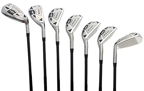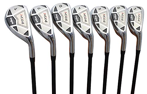 Details: Replace your entire difficult to use iron set with the Majek MX4 all hybrid iron set! The MX4 was Co-Engineered by members of the UCLA's engineering department. This unique relationship and pure engineering approach created the Majek MX4 all hybrid iron set. The all Hybrid design gives you more weight position behind the "Sweet Spot". The thin forged steel face provides a more trampoline effect which leads to added distance on all lofts. Stainless sole of the iron bodies are positioned with more weight to make getting the ball airborne easier. The lightweight premium 100% Graphite Shaft creates a faster swing speed for greater distance. Replace those old hard-to-hit irons with these game-changing MX4 hybrid irons!