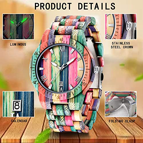 - Feature- 100% Handmade Wooden Watch -- Using Natural bamboo, No Paint (Non-toxic Hypo-allergenic), 12 Hour formats, Analog And Date Display type