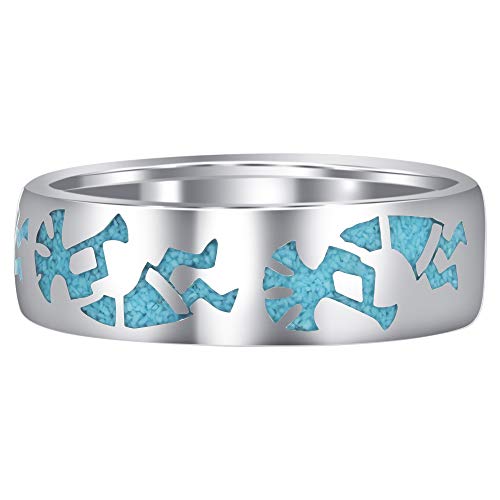 - Made in USA. Blue Turquoise Gemstone Inlay Kokopelli Mens Wedding Band Ring