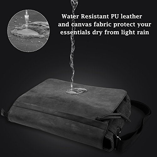 Details: ❤ High quality and Water Resistant: Made of PU leather and water repellent waxed canvas fabric, strong buckles, smooth zipper, reinforced stitching, make this messenger bag build to last. You will get a classic crossbody bag, perfect for any situation, this stylish design keeps you moving in style and will receive many compliments during your commute, work, school, college, travel, etc. ❤ Shock-proof Briefcase: A thick foam padding laptop compartment with velcro closure protecting your laptop (up to 15.6 inch) from accidental bump, shock, scratch. ❤ Large Capacity : The office bag dimension is 16 x 4 x 11 inch. Total of 11 pockets. Main compartment features 4 inner pockets for your pens, phone, power bank, wallets, keys etc, The back pockets fits your valuables. The multi-purpose pockets design, roomy enough for all of your stuffs. ❤ Comfortable Carry: Long and wide shoulder straps of black shoulder bag can fully adjustable to keep you comfortable. ❤ Satisfaction Guarantee: All of our bags have 1-YEAR WARRANTY. Just order this canvas leather satchel if you love it, there is no worry about the issue. We are serious sellers, and we are always responsible to our customers. If you have any quality problem with your bags, please contact us. We will resend or refund to you.