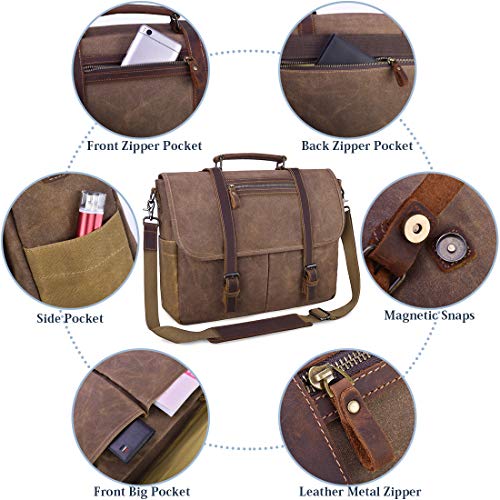 - ✓【Durable & Waterproof】The canvas messenger bag is crafted from Waterproof Durable Canvas + Genuine Leather, which is great for long-term use. The waterproof material can keep your laptop and documents dry during light rain.