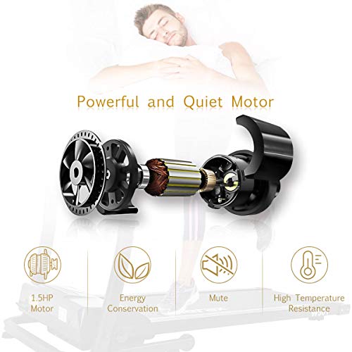 - Smooth and Powerful 1.5 Power Motor - allowing for speeds ranging from 1–12 KM/H (0.62 – 7.5 MPH) to help you meet a variety of fitness goals on this treadmill. A simple title of this compact treadmill for home helps you easily fold up the machine, and a slight kick in the stand helps easily unfold the treadmill slowly, without carrying the weight.