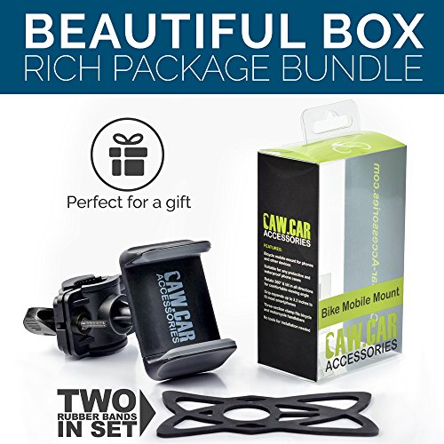 Details: Searching for a handy good quality bike mount for your phone, but you do not feel like spending your time choosing the best option? You don't have to, we have done it for you! We have thoroughly studied all bicycle and motorcycle holders you can buy on US market (and not only). We carefully looked through all users reviews and complaints and developed our own CAW.CAR Accessories Extra-Thought-Out Universal Super-Handy Bicycle Phone Mount! We worked with strong attention to details and customers feedback. You might even not notice all our technical perks and small improvements from the first glance, but you will definitely feel it while using our mount, especially if you have previous experience with other handlebar mounts to compare with. Thanks to our innovative adjustable handlebar grip, our mount will perfectly suit your bike, whether you are an elderly lady with an old school thin frame bike, a black-bearded biker riding a brutal Harley Davidson chopper or a Pokemon Go enthusiast trying to catch 'em all on your city bike. Oh, you are an extreme mountain bike rider, no problem, your phone will never fall out being securely fixed by all its four corners with our safety rubber belt. By the way, you may not use it while quietly riding home from that rocky forest with a pleasant pain in your ass. And don't worry, you do not need any tools to install our bike cradle, your skillful fingers will be just enough. No, you can't break it while installation or use, even if you try to, it's made of unbreakable metal (bar clamp) and highest quality plastic (phone clip). So, what are you waiting for? As you see we have thought everything out, our holder is just what you need! Order right now and when you do, consider getting two and get a discount... one for you and one as a gift for a fellow rider. Have a beautiful view wherever you ride your bike!
