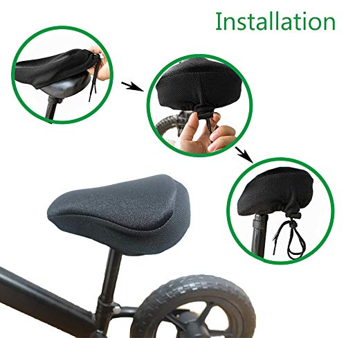 - 【Quality Control】Soft kids gel bike seat cushion is padded with environmentally friendly transparent silica gel, and surface is made of stretchy lycra material. High quality memory foam and gel padding exert no harm to health. Absorb shock and reduce pain effectively. Better protect your butts. Offering child most comfortable riding experience..