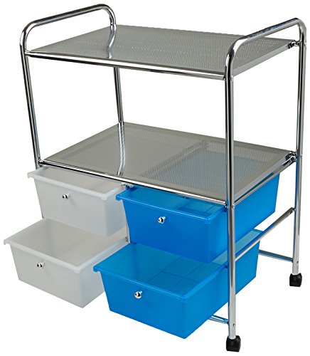 Details: A Mobile Storage Solution! The Mind Reader 4 Drawer Storage Cart is the best storage organizer for any room in your home, office, or classroom. Keep smaller items stored inside your drawers while your easily accessible items are on top. Two handles allow for you to easily maneuver this cart when needed. 2-Tier Shelves! Place your most important daily items on the 2-tier shelves for easy access. Can hold all of your books, school supplies, office supplies and even a laptop if you would like to use the top shelf as a work station. Multi-Purpose Cart! Multifunctional storage cart can be used in various settings. Perfect for classroom use by teachers. Store learning materials, school supplies and books on the storage cart. An excellent bathroom cart in your home. Store toiletries, small towels and bath accessories in the storage drawers. The 2 shelves can be used to store your folded bath towels or tissue paper. Use this as an office cart, storing away important files and desk supplies in the storage drawers. Place a small printer on the top shelf and use it as a printer cart. No limits in the variety of ways this cart can be used. Specifications15. 35” L x 24. 8” W x 31. 89” H