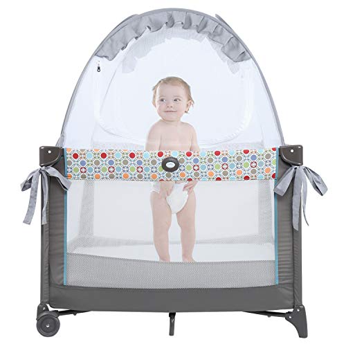 - 【Easy to use & Portable】Set up in a second. Open and place the tent into the Pack ‘n Play, put the mattress on the bottom, then tie the 4 side straps to the corner. It also comes with a carry bag for easy storage and transport.