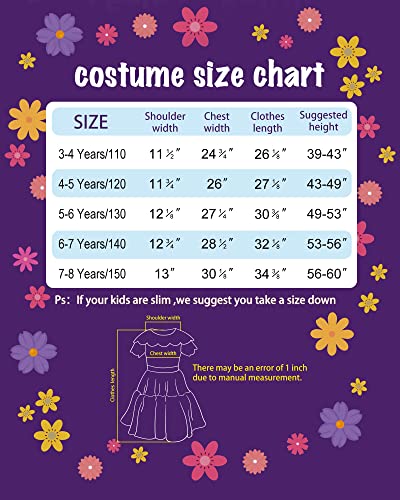- Size: Size runs big, take a size down would be better.By using the size chart in picture to select a right one for your girl.In this Mirabel dress,your girl will be ready to go on their own courageous adventures, just like Mirabel!