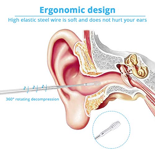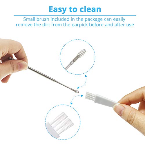 - 【Ergonomic Design】: This Ear Wax Removal Tool Cleaner Kit include Traditonal Ear Pick, Spiral Ear Pick, Spring Ear Pick and Billeau Ear Loop and Cleaning Brush, very considerable for use