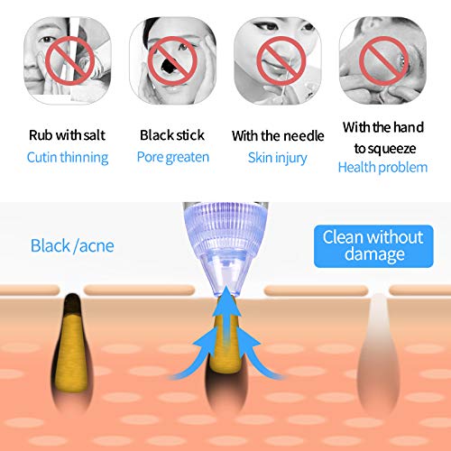 - [Deep Clean Your Face] Blackhead remover with powerful suction to deeper cleansing of the skin. Blackhead vacuum taking imported air pump, generating proper centrifugal force to suck the blackheads, whiteheads, dead skin, grease and makeup residues, tighten skin make your skin more radiant