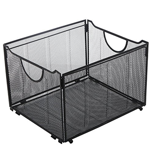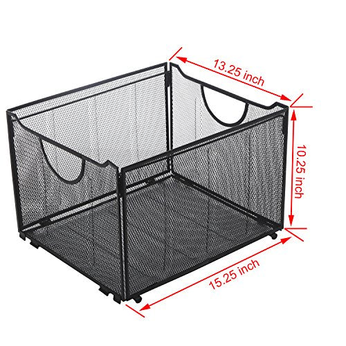 Details: Your home or office will be well-organized and clutter-free when you stow files and other items in this storage crate. Made of sturdy metal mesh with a classic black finish, this box also boasts a clever collapsible design that allows you to fold up the crate when it is not in use. When this storage bin is in use, you can fill it with all manner of items, from file folders and records to toys and towels, to keep your home or office perfectly organized.