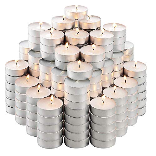 - HANDY PREMIUM TEA LIGHTS CANDLES IN BULK: The 200 tea candles are compact yet generous in size (1.5” in diameter & 0.65” in height). These tealight candles are not only pretty & useful, they’re also very economical – perfect for big events like weddings!