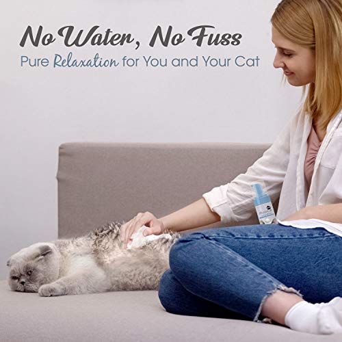 - ๐บ EASY TO USE - Our bottle uses a quiet, nonthreatening hand pump, unlike other shampoos that use a spray action that sends cats running for their life. Our solid easy-to-apply foam makes every wash a dream. Simply apply, massage, and dry.