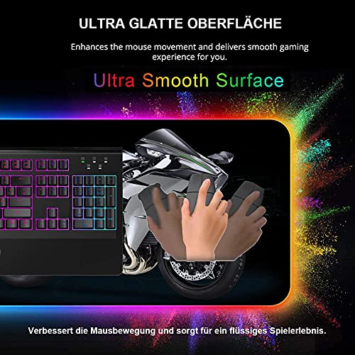- RGB LED Backlight: The RGB soft mouse pad has real RGB backlit effect, there are 14 lighting modes, you can turn off the light if you want. You can also use the rainbow mode with the RGB gaming keyboard and mouse