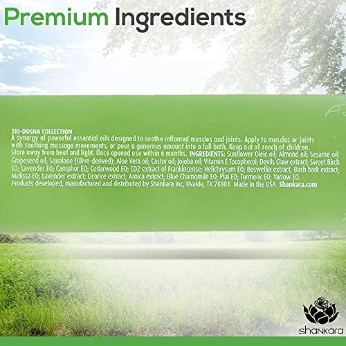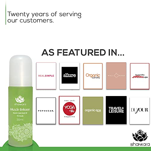 - ALL NATURAL BODY MASSAGE OIL FOR MASSAGE THERAPY - The Shankara Muscle Release oil is made from a variety of herbalized oils, essential oils, moisturizers and carrier oils including Arnica, Yarrow, Sweet Birch, Devils Claw, Boswelia, Helichrysum, Lavender, Aloe Vera, Jojoba, Turmeric, Almond oil and more. This formula includes only 100% natural ingredients to create a soothing blend with an aromatic and invigorating smell.