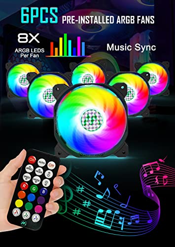 - Well-engineered Airflow - MUSETEX PC case MN6-B are pre-installed 6 pcs 120mm ARGB fans to provide lighting and utilize anti-vortex vanes to ensure proper airflow inside the case to keep the interior components at optimum temperature.